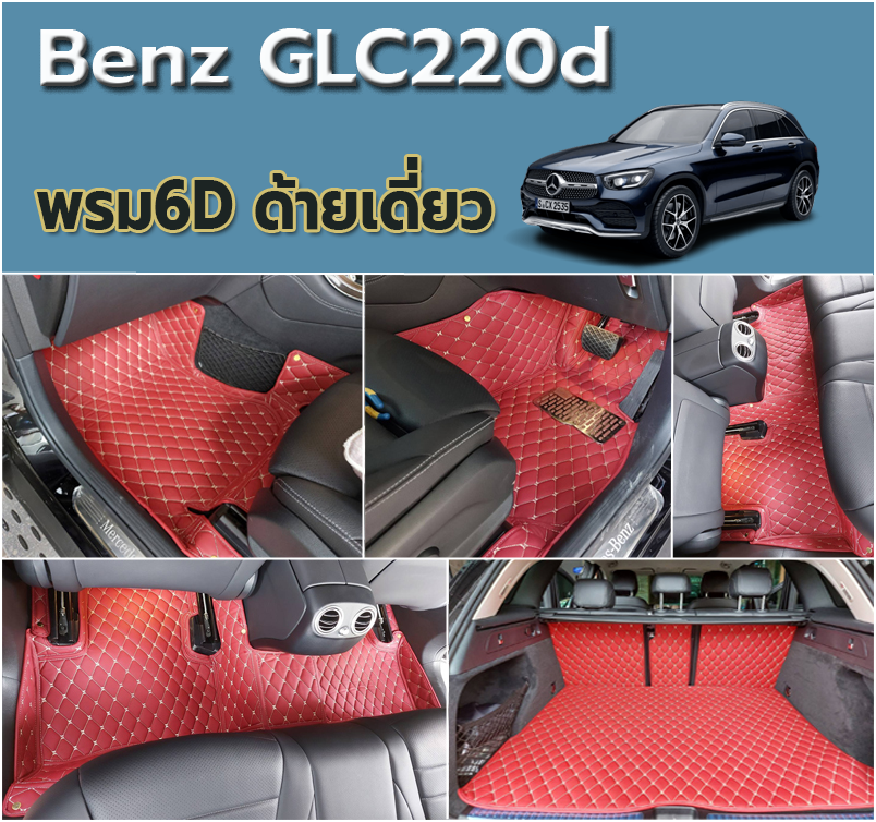 พรมปูพื้นรถยนต์ Benz GLC220d สีแดงไวน์ด้ายทอง |