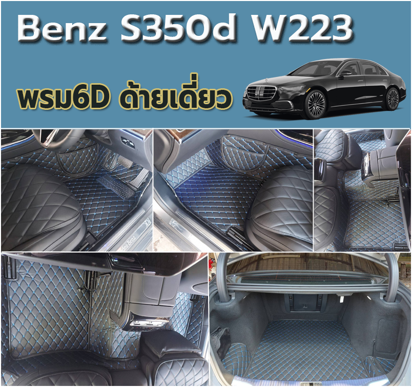 พรมปูพื้นรถยนต์ Benz S350d W223 สีดำด้ายน้ำเงิน |