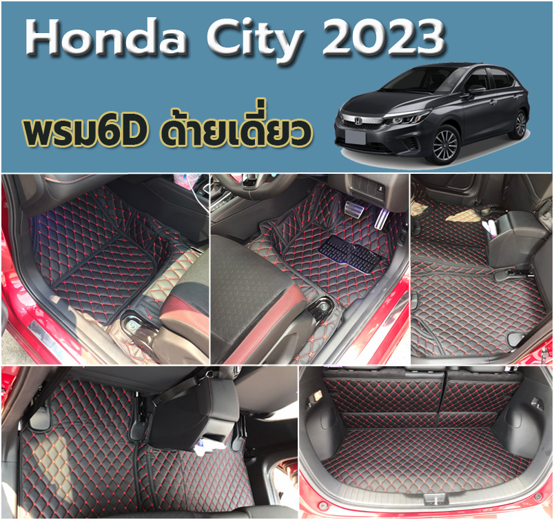พรมปูพื้นรถยนต์ Honda City 2023 สีดำด้ายแดง |