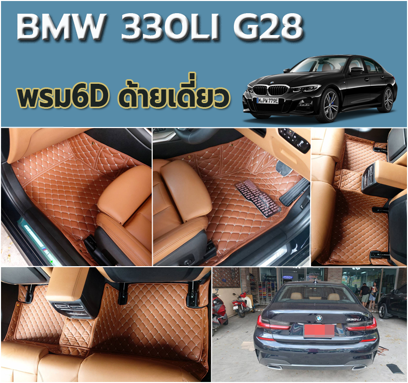 พรมปูพื้นรถยนต์ BMW 330LI G28 2023 สีน้ำตาลเข้มด้ายทอง |
