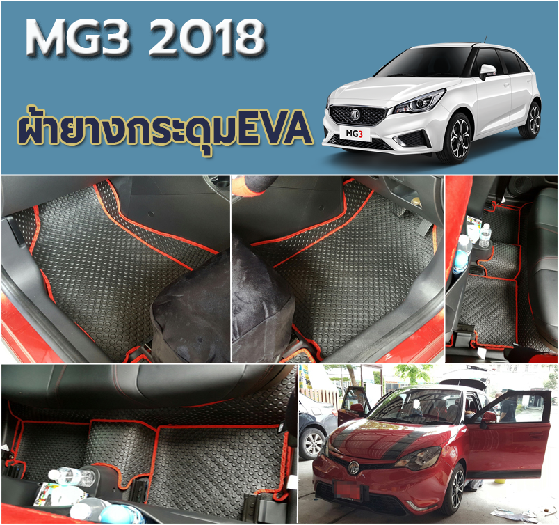 ผ้ายางปูพื้นรถยนต์ MG 3 2018 กระดุมสีดำขอบแดง |