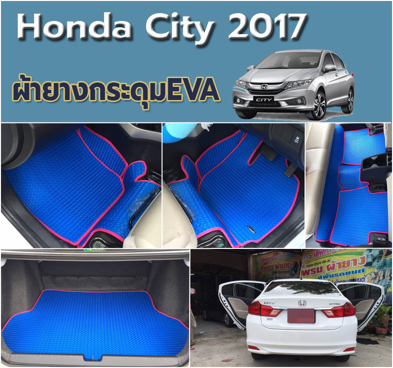 ผ้ายางปูพื้นรถยนต์ Honda City 2017 ธนูสีฟ้าขอบชมพู |