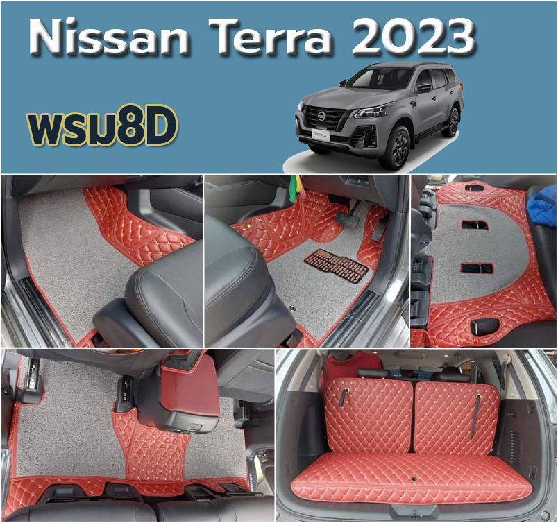 พรมรถ Nissan Terra 2020 สีแดงไวน์ด้ายทองเย็บติดไวนิลสีเทา |