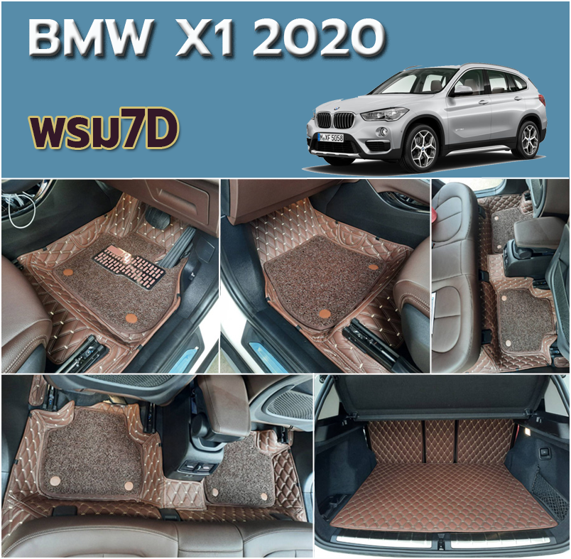 พรมรองพื้นรถยนต์ BMW X1 2020 สีกาแฟด้ายทอง เสริมไวนิลดักฝุ่นสีกาแฟ |