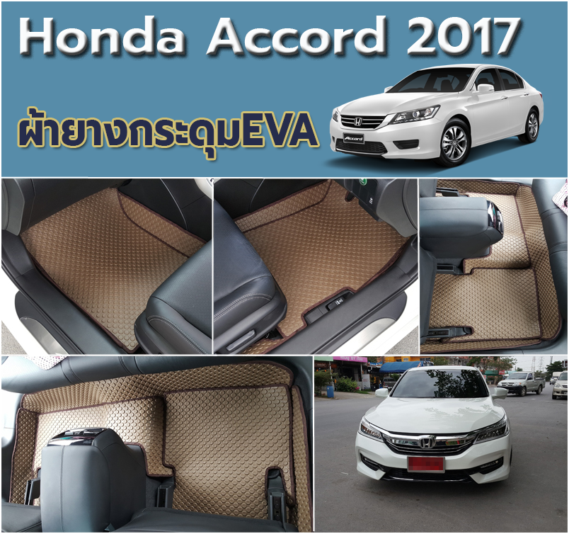 ผ้ายางปูพื้นรถยนต์ Honda Accord 2017 กระดุมสีน้ำตาลขอบน้ำตาล |