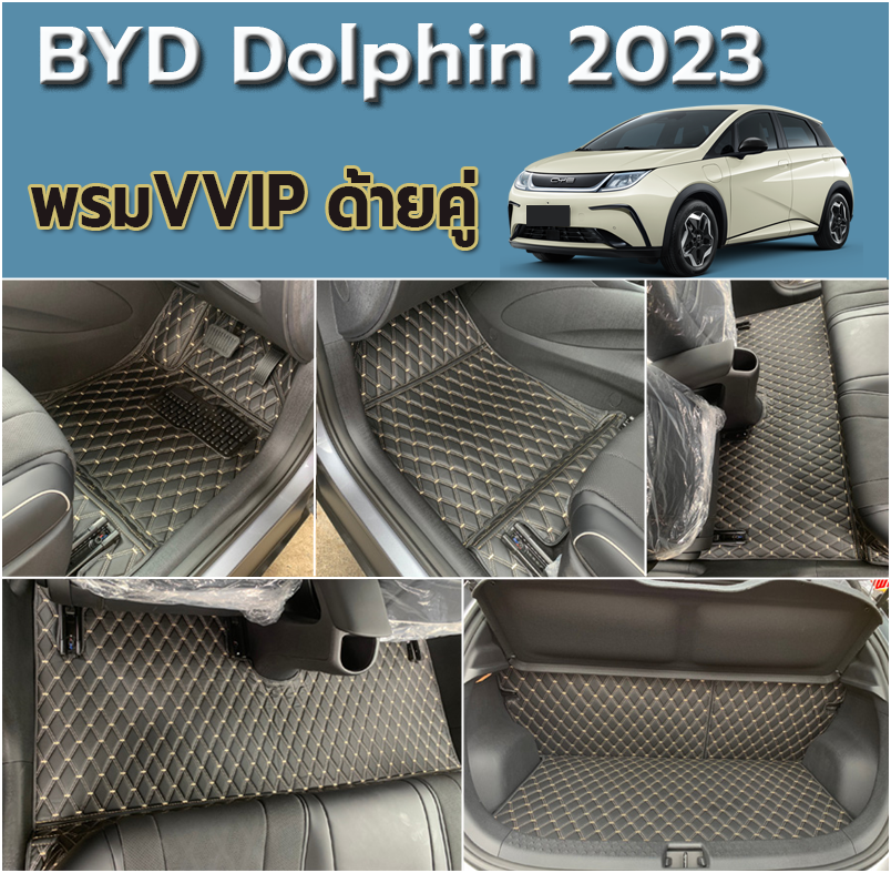 พรมรถยนต์ BYD Dolphin สีดำด้ายทอง |
