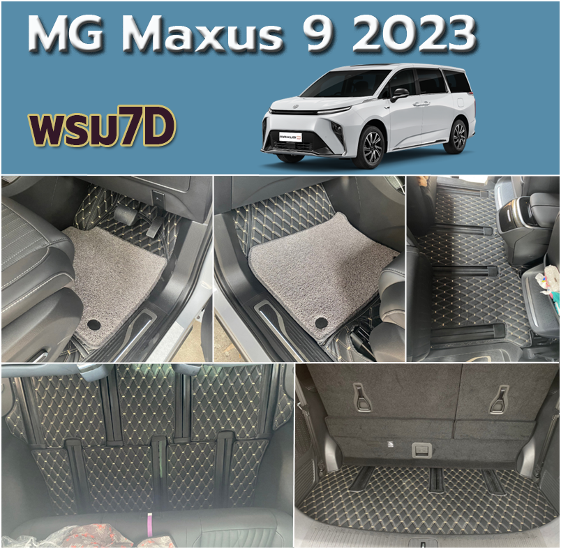 พรมรองพื้นรถยนต์ MG Maxus 9 สีดำด้ายทอง เสริมไวนิลดักฝุ่นสีเทา |