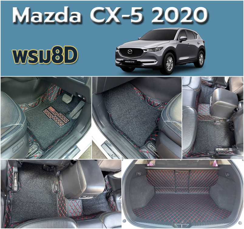 พรมรถ Mazda CX-5 2020 สีดำด้ายแดงเย็บติดไวนิลสีดำ |