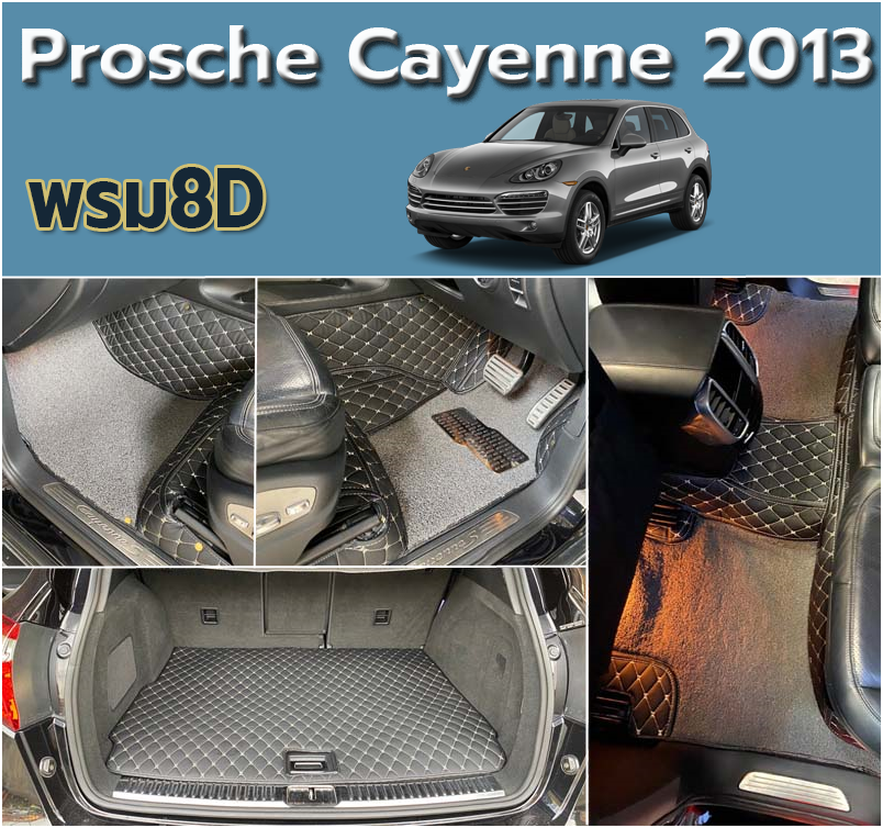 พรมรถ Porsche Cayenne 2023 สีดำด้ายทองเย็บติดไวนิลสีเทา |
