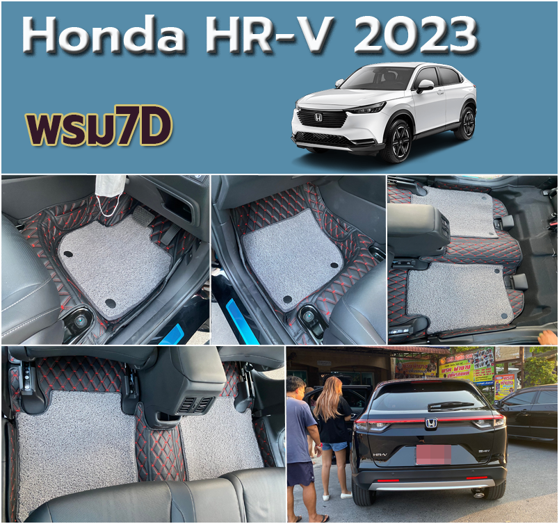 พรมรองพื้นรถยนต์ Honda HR-V 2023 สีดำด้ายแดง เสริมไวนิลดักฝุ่นสีเทา |
