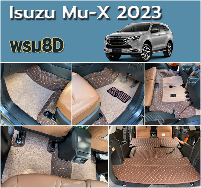 พรมรถ Isuzu Mu-X 2023 สีกาแฟด้ายทองเย็บติดไวนิลสีครีม |