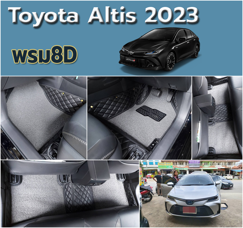 พรมรถ Toyota Altis 2020 สีดำด้ายดำเย็บติดไวนิลสีเทา |